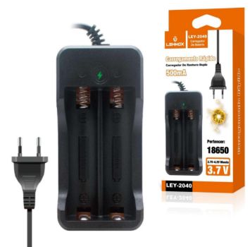 CARREGADOR DE PILHA LANTERNA TATICA(18650) 3.7V/4.V 500MA DUPLO LEHMOX